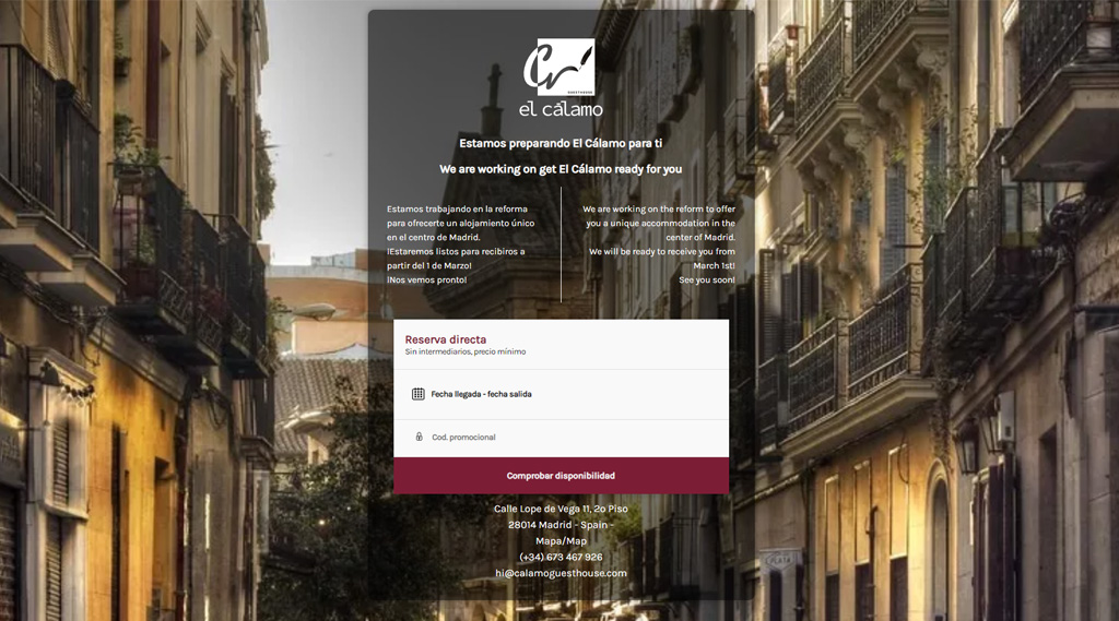 Mientras construimos la web, publicamos una Página de Coming Soon con el sistema de reservas integrado para que los visitantes pudiesen reservar mientras concluíamos el trabajo.